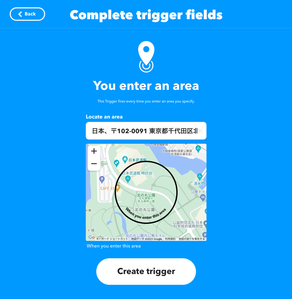 ※ IFTTTのiOSアプリ、Androidアプリをインストールし、位置情報の許可をする必要があります。