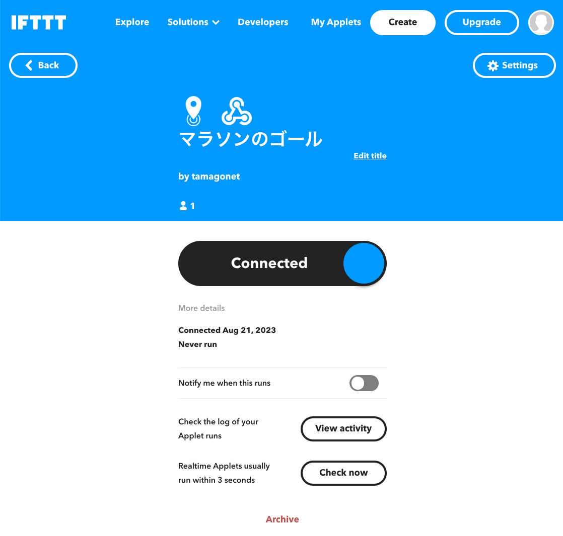 Connectedに変更したら準備完了、あとは走るだけ。